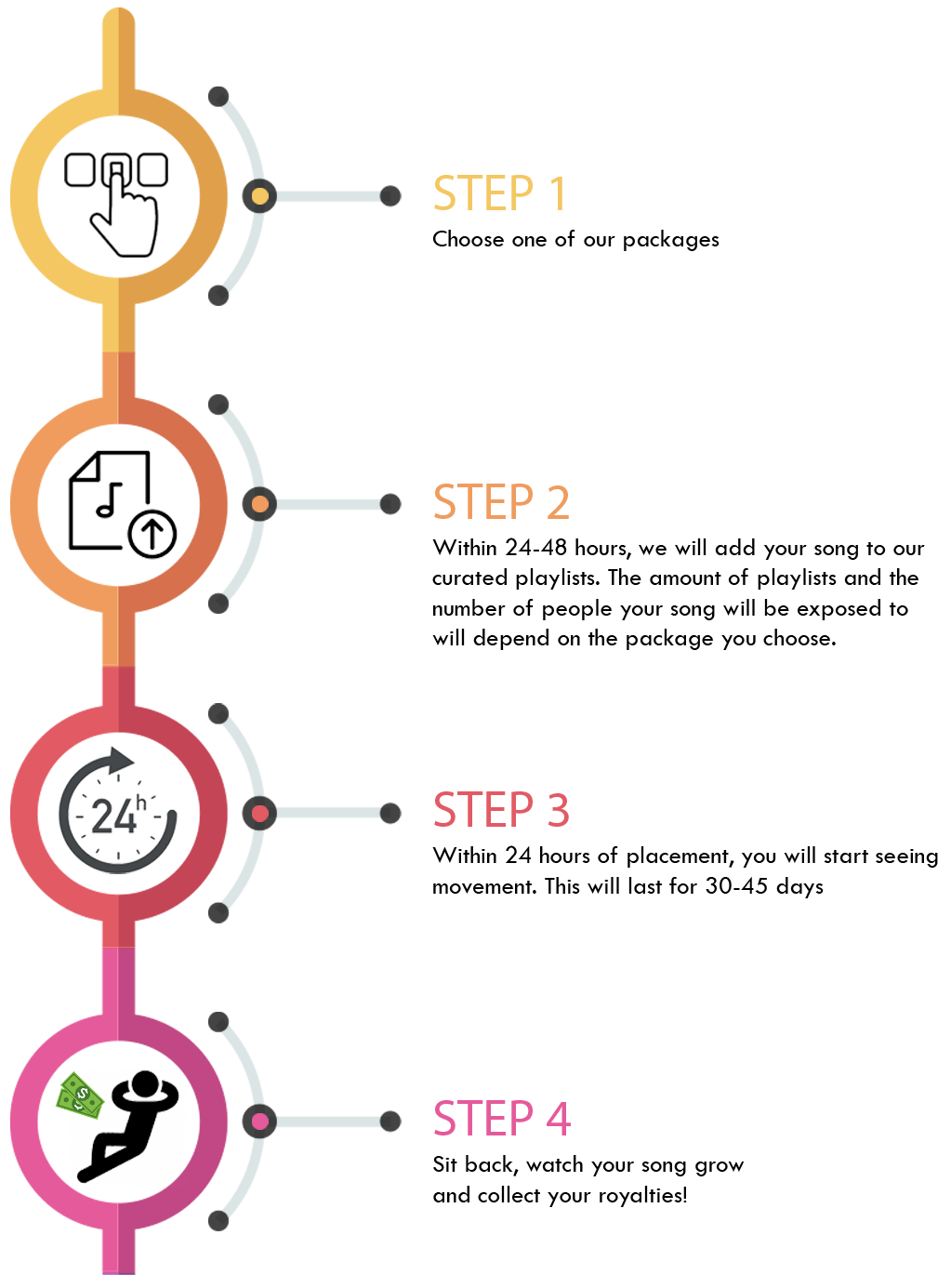 Select a package, give us quick info about you and your music and that's it! Sit back and relax, while we do all the hard work for you!